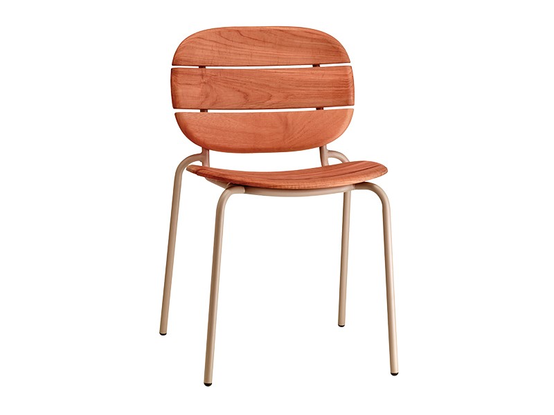 • Seat and backrest in solid Sapelli mahogany wood slats treated for outdoor use.