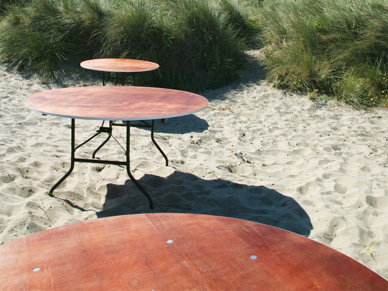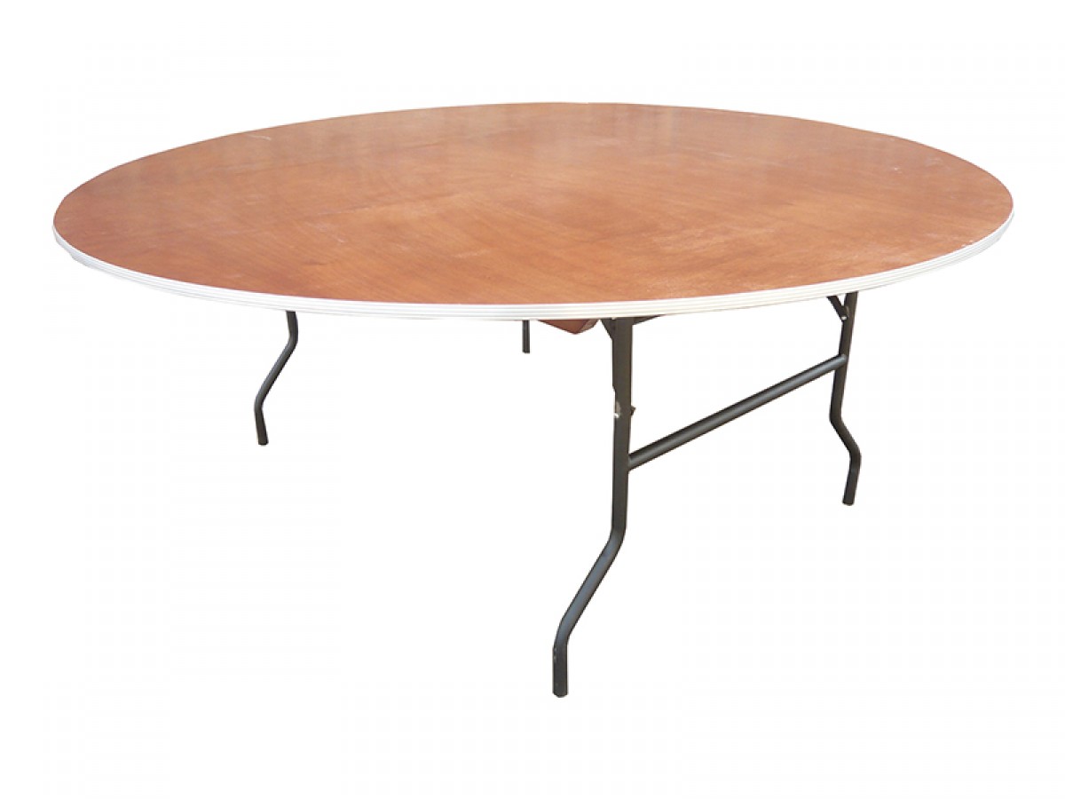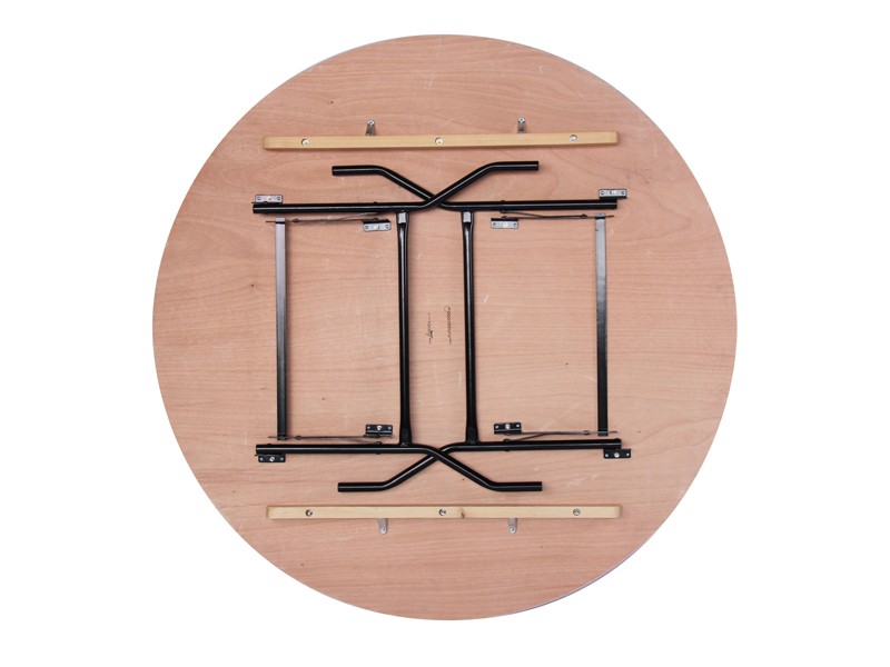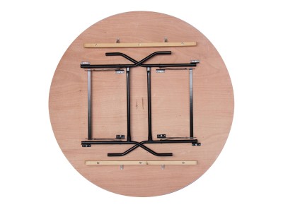 - Ocean Round is a round folding table with plywood table top, finished with PVC edge and epoxy black steel frame.