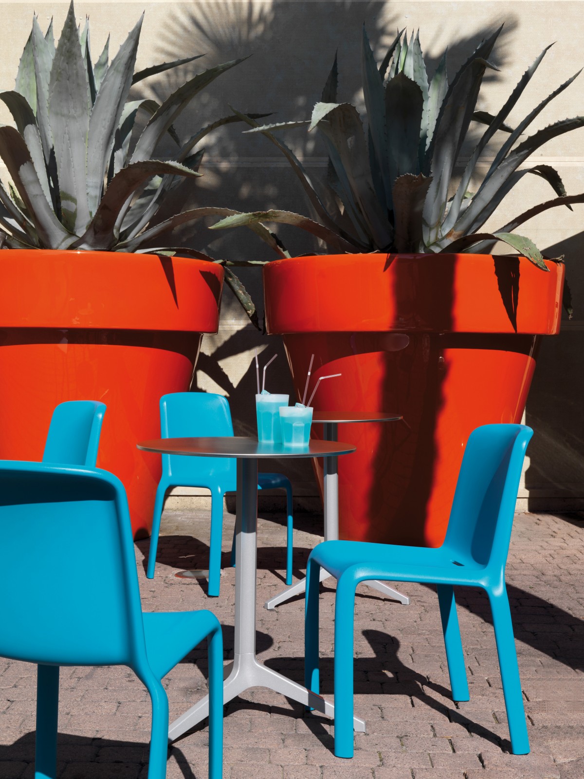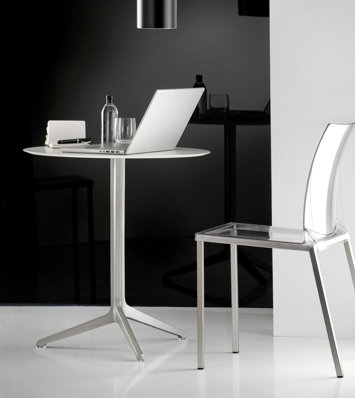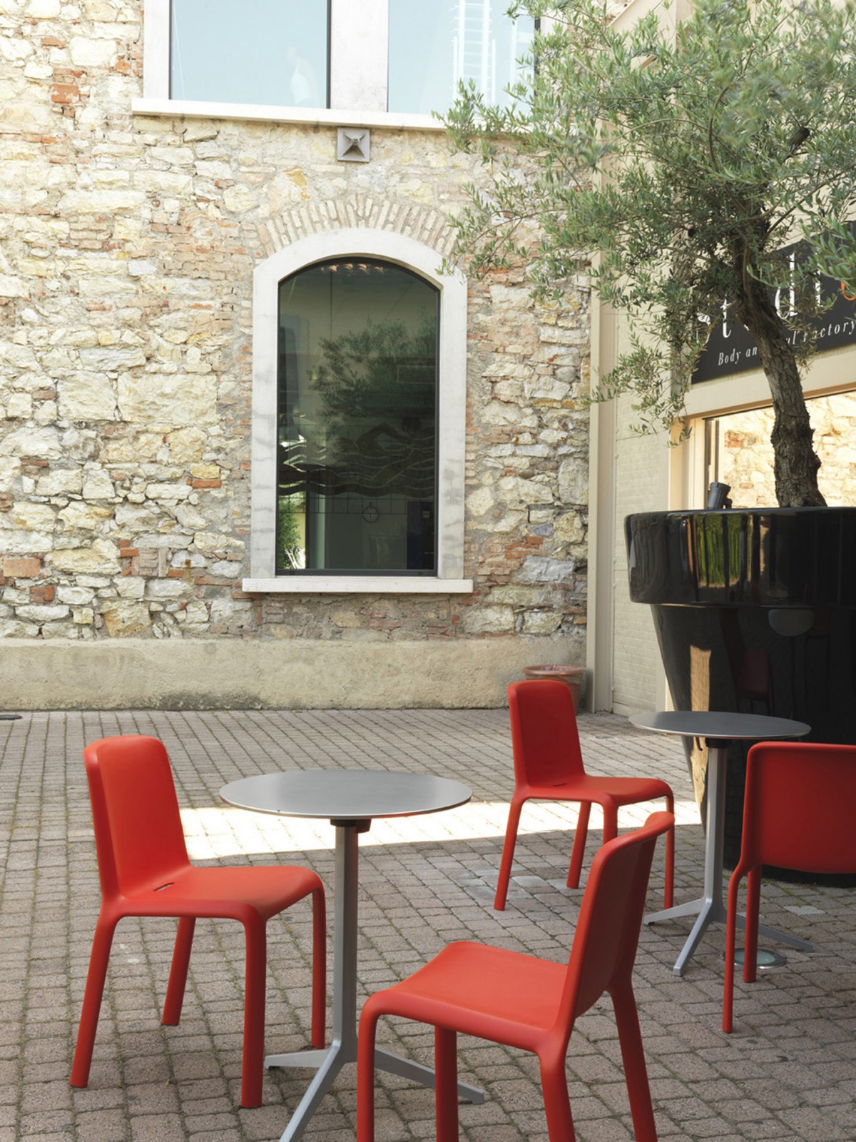- Ypsilon table base is conceived to "orbit" on beaches, terraces and gardens, that is to resist to summertime high temperatures, and made of an aluminium structure that will keep it always cold.