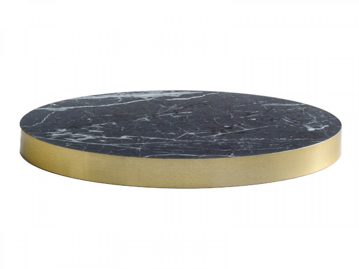 • The brass edge has a brushed metal look with a stain finish.