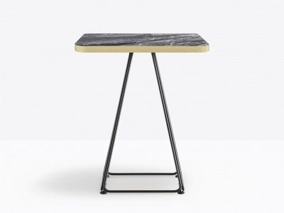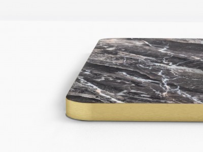 • Laminate tops with flat brass edge.
