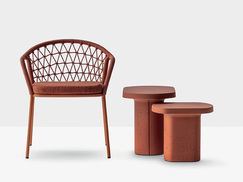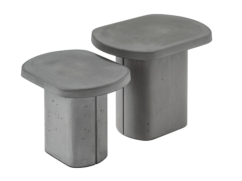 • Caementum is a delicate and sturdy single-piece concrete table with a central base.
