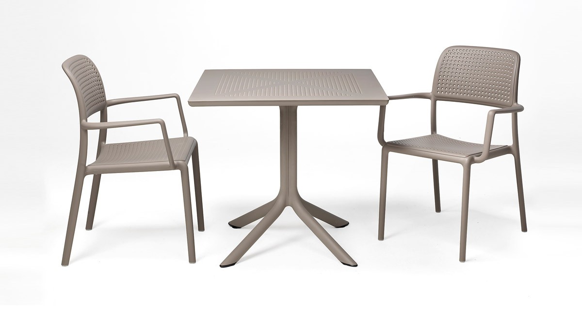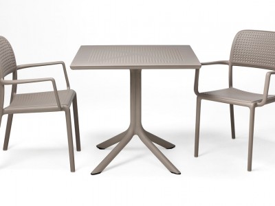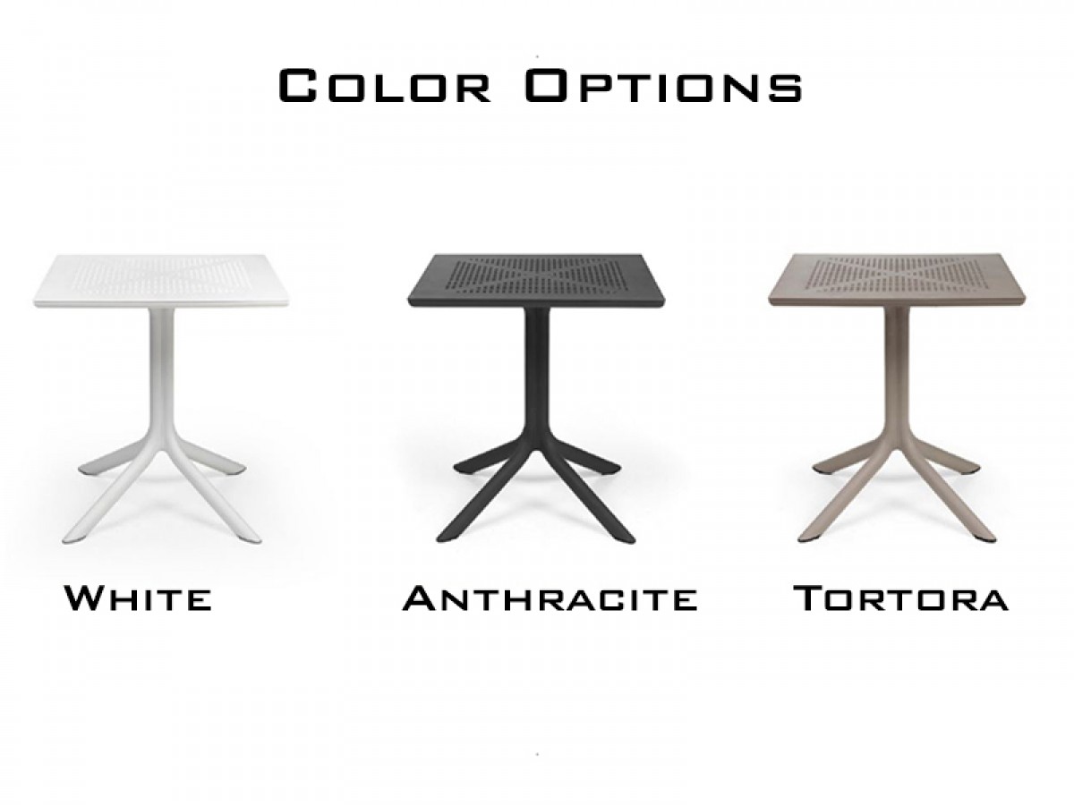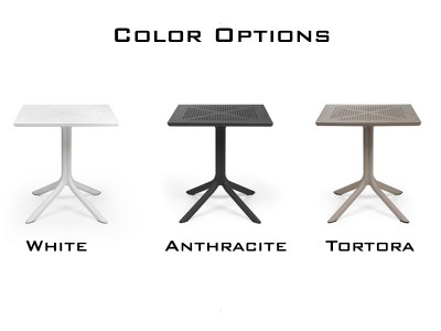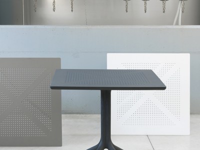 - Table with center column and four legs, with DurelTOP 80 x 80 cm tabletop.