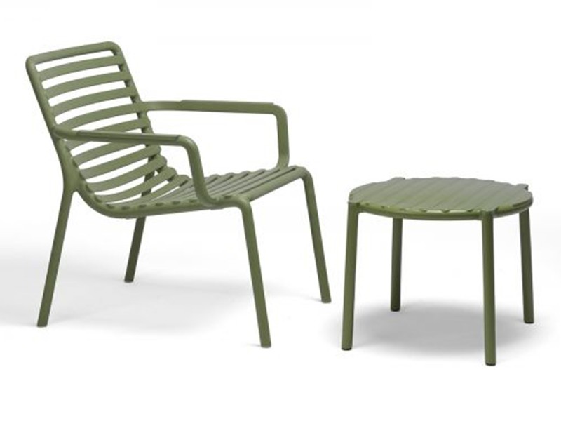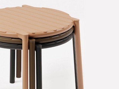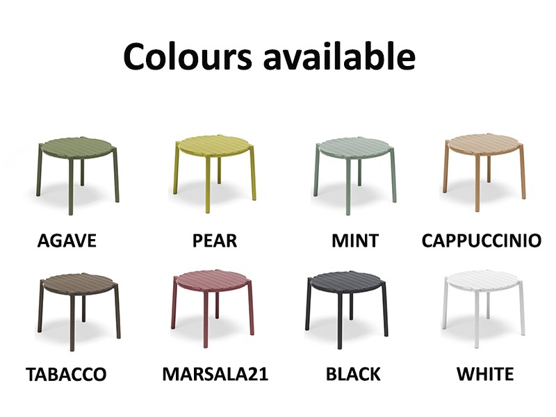 • Monobloc low table in fiberglass resin with a round top and a new, lightweight design.
