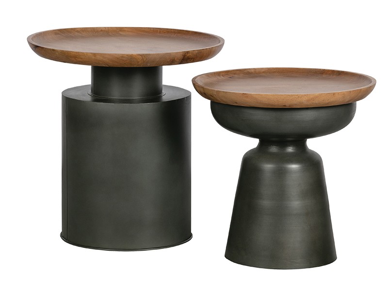- Circular side table featuring a wooden top