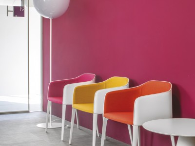• Injected polypropylene table base which can be combined with  solid laminate, glass or powder coated steel tops.