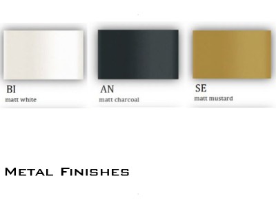 • Entirely made out of metal and available in 3 different colors.: matt charcoal, matt white, and matt mustard