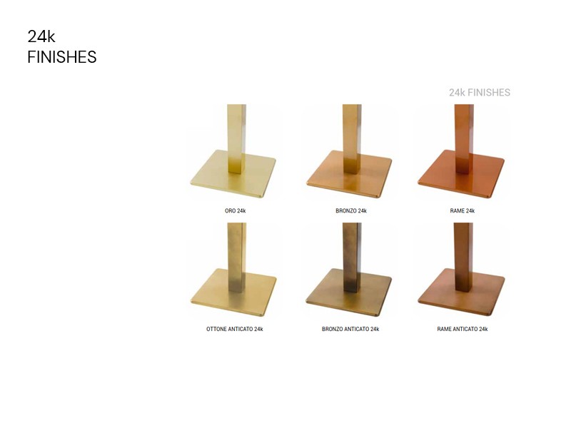 - Cone-shaped table frame in aluminium or cast iron.