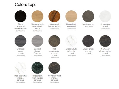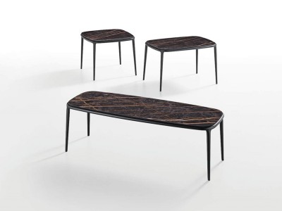 - Lea coffee table, featuring a sturdy four-legged base crafted from lacquered metal. The top of this coffee table is available in your choice of wood or ceramic, offering a range of options to suit your desired aesthetic and functionality.
