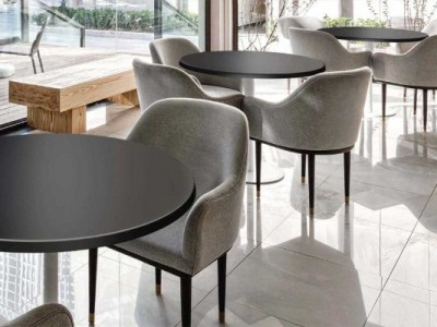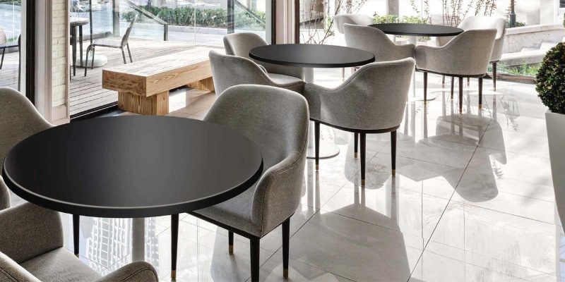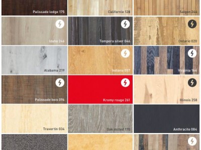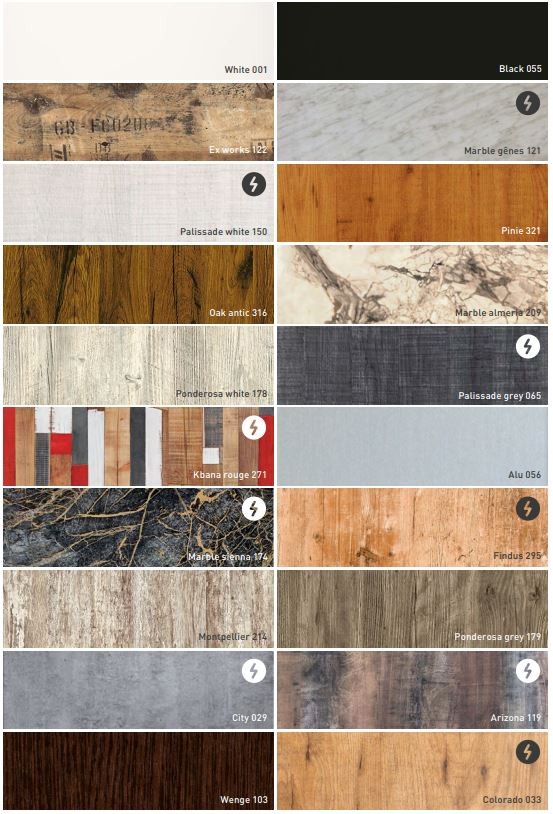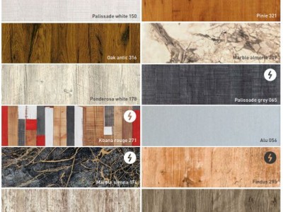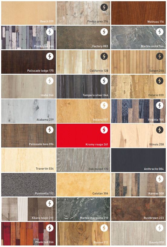 • Features stone and wood look decors as well as in subtle colours and may also be ordered with steel or brass edging to create an inviting atmosphere for both in and outdoors.