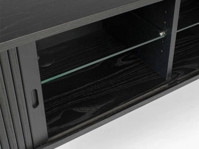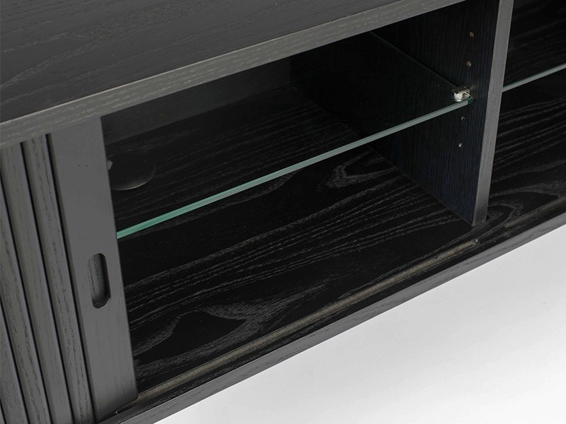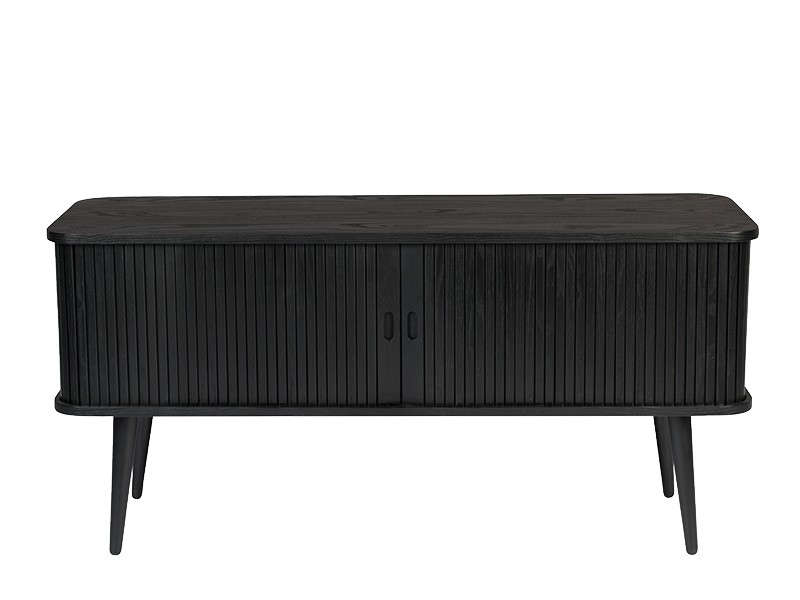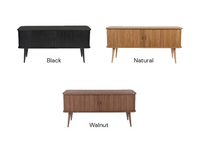 - Wooden media sideboard with eye catching sliding tambour doors.